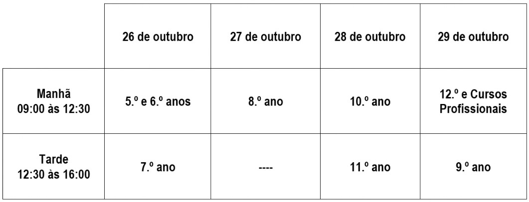 Informa-se os interessados que o pagamento do título de transporte e da alimentação do mês de novembro de 2021 pode ser efetuado até 29 de outubro. Deverá ser respeitado o dia e horário designado para cada ano de escolaridade.